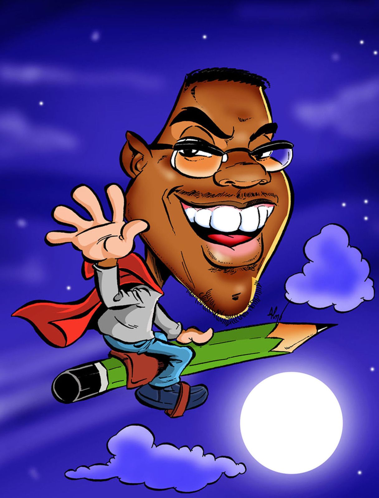 1- Comment se porte la bande dessinée centrafricaine ? Elle s’accroche tant bien que mal. L’absence de fanzine et de maison d’édition a rendu la BD la BD 2- Faites- vous exclusivement de la bande dessinée ? Je suis avant tout illustrateur. Je ne suis pas véritablement un professionnel de la BD la BD. 3- On constate chez vous un niveau de dessin supérieur à celui de bon nombre de vos compatriotes, avez-vous fait des cours ou/et des stages de formation en bande dessinée ? Je suis autodidacte, mais j’ai eu l’opportunité de participer à plusieurs stages de BD en Afrique (Cameroun, Gabon, République Démocratique du Congo…) et en France. Ce qui n’est pas le cas de mes compatriotes. Si vous constatez que mon niveau est supérieur, c’est parce que j’ai pu, par le biais de festivals et résidences de BD, confronter mon talent à ceux de confrères plus doués que moi. Ces différentes rencontres internationales m’ont permis de me surpasser pour pouvoir exister. 4- Comment voyez-vous le développement de la bande dessinée africaine en générale et centrafricaine en particulier ? La BD En Centrafrique, le chemin est encore long à parcourir. La plupart des dessinateurs attendent que le besoin se fasse sentir avant de se mettre au travail. En fait, pour faire émerger la BD